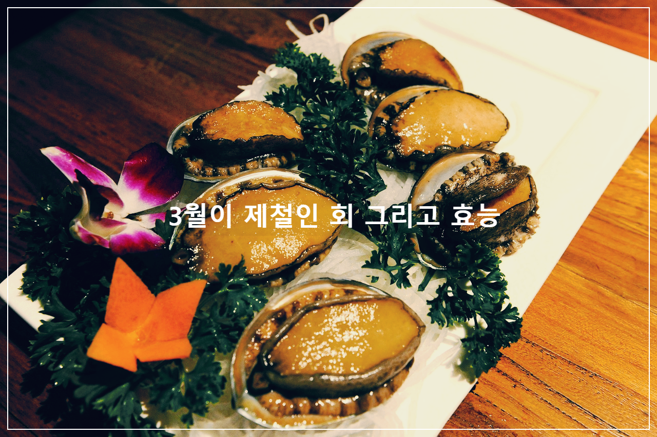 전복회: 전복도 3월에 맛이 제일 좋습니다. 생으로 먹기에는 부담스러운 분들은 조금 구워서 먹을 수도 있습니다.